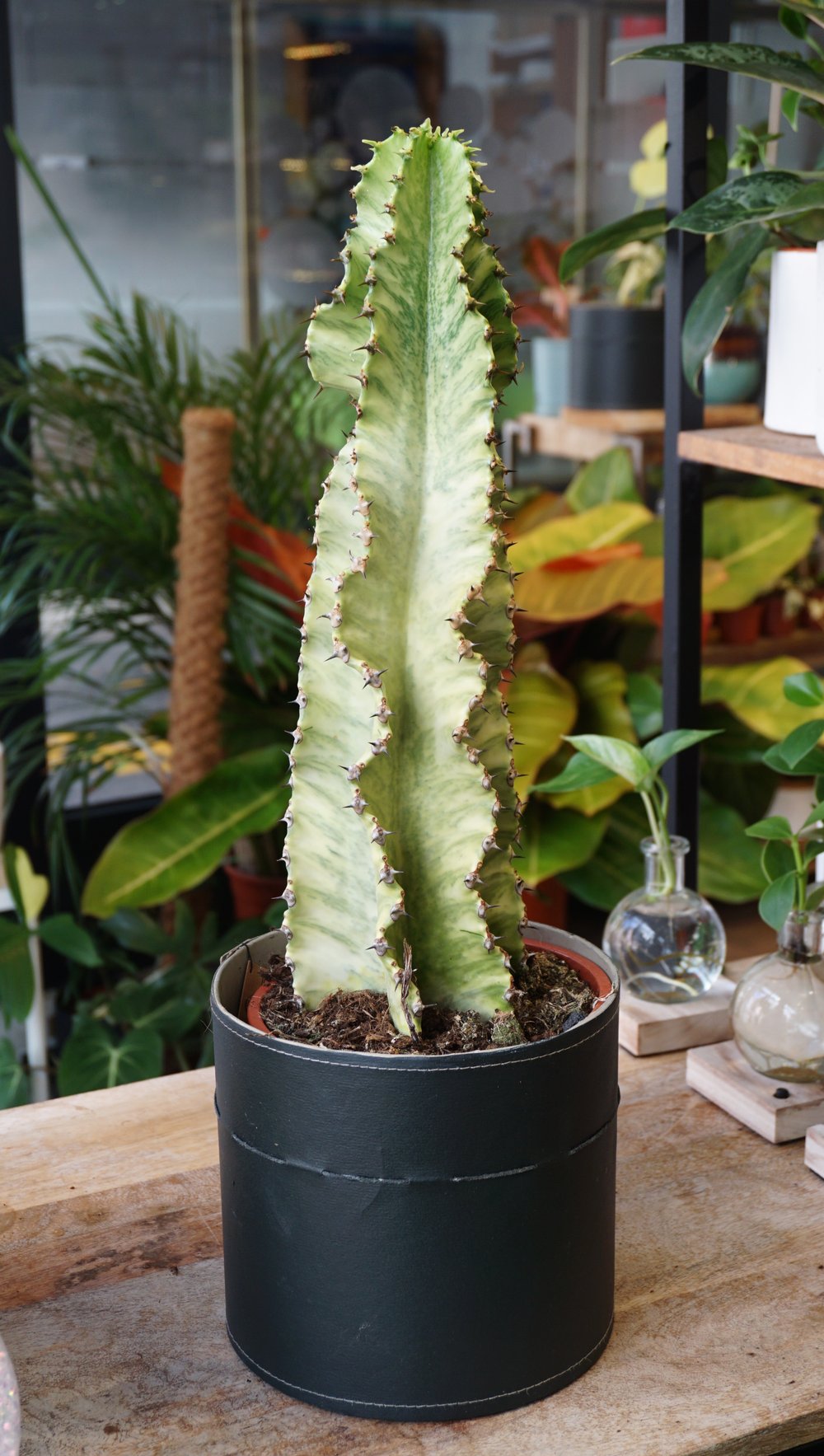 LâEuphorbia ingens variegata est un vĂ©ritable bijou vĂ©gĂ©tal, parfait pour les amateurs de plantes originales et faciles Ă vivre. Offrez Ă votre intĂ©rieur une ambiance chic et naturelle avec cette plante dâexception aux couleurs subtiles et Ă©lĂ©gantes, parfaite pour apporter du contraste Ă vos plantes vertes.