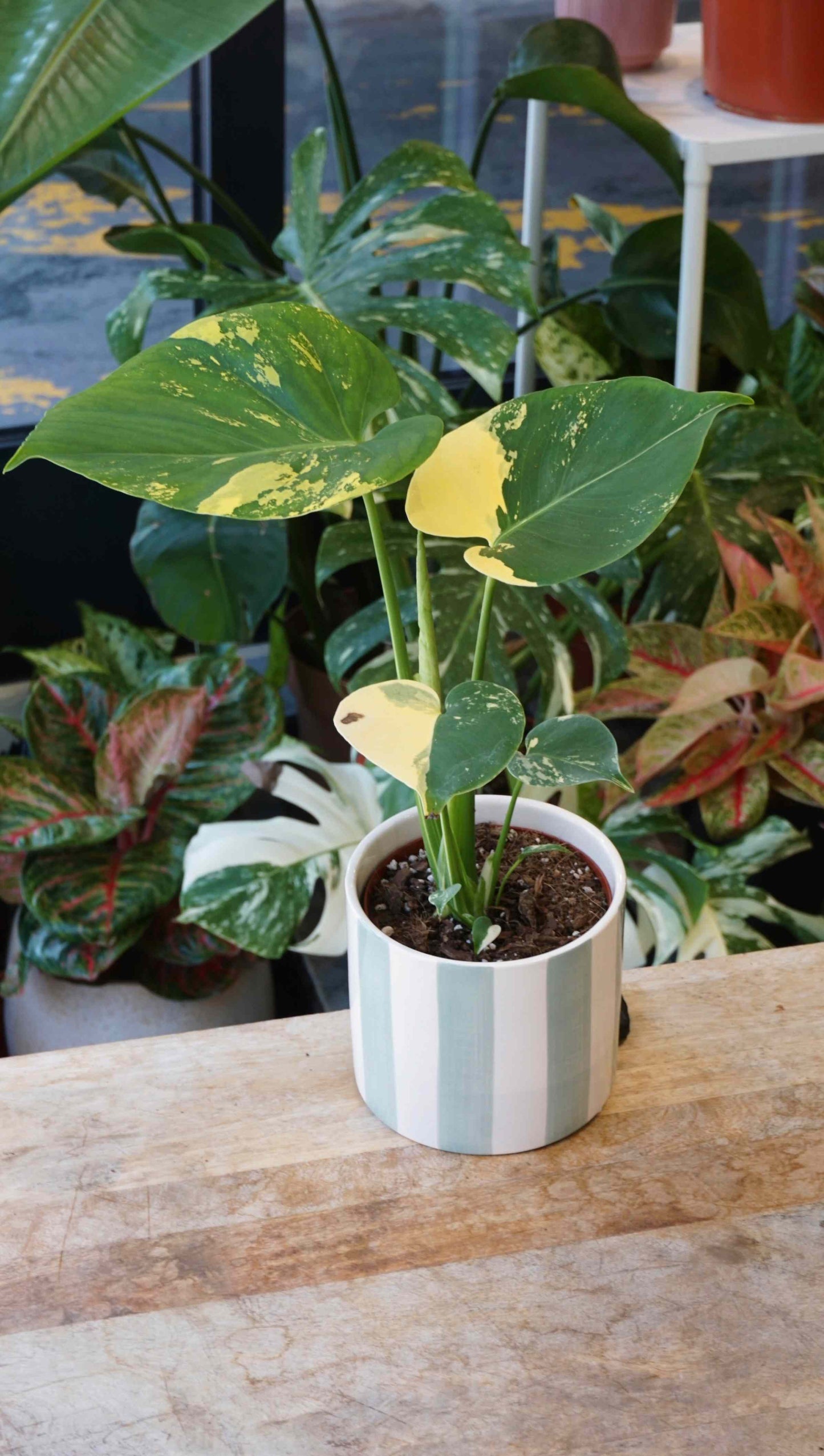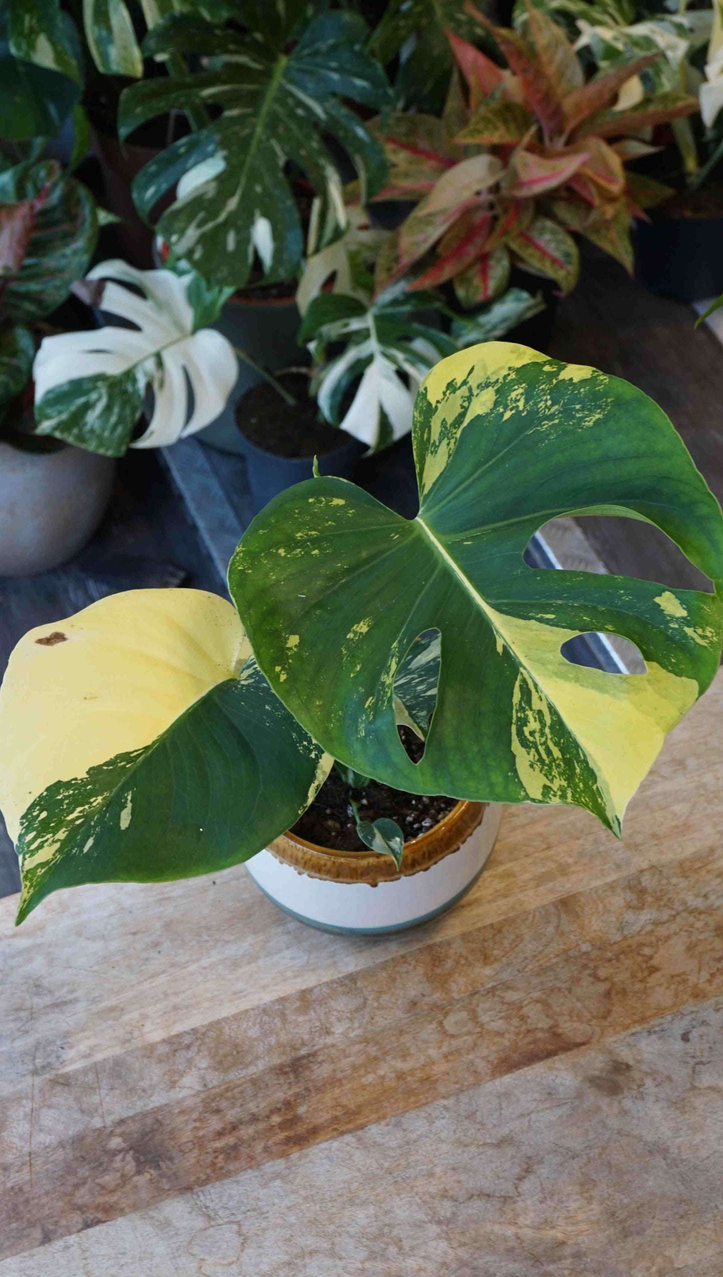 La Monstera Deliciosa Aurea (Yellow Marylin) est une monstera large form à variegation aurea, de couleur jaune donc, qui apparaît plus clairement sur ses feuilles avec le temps.