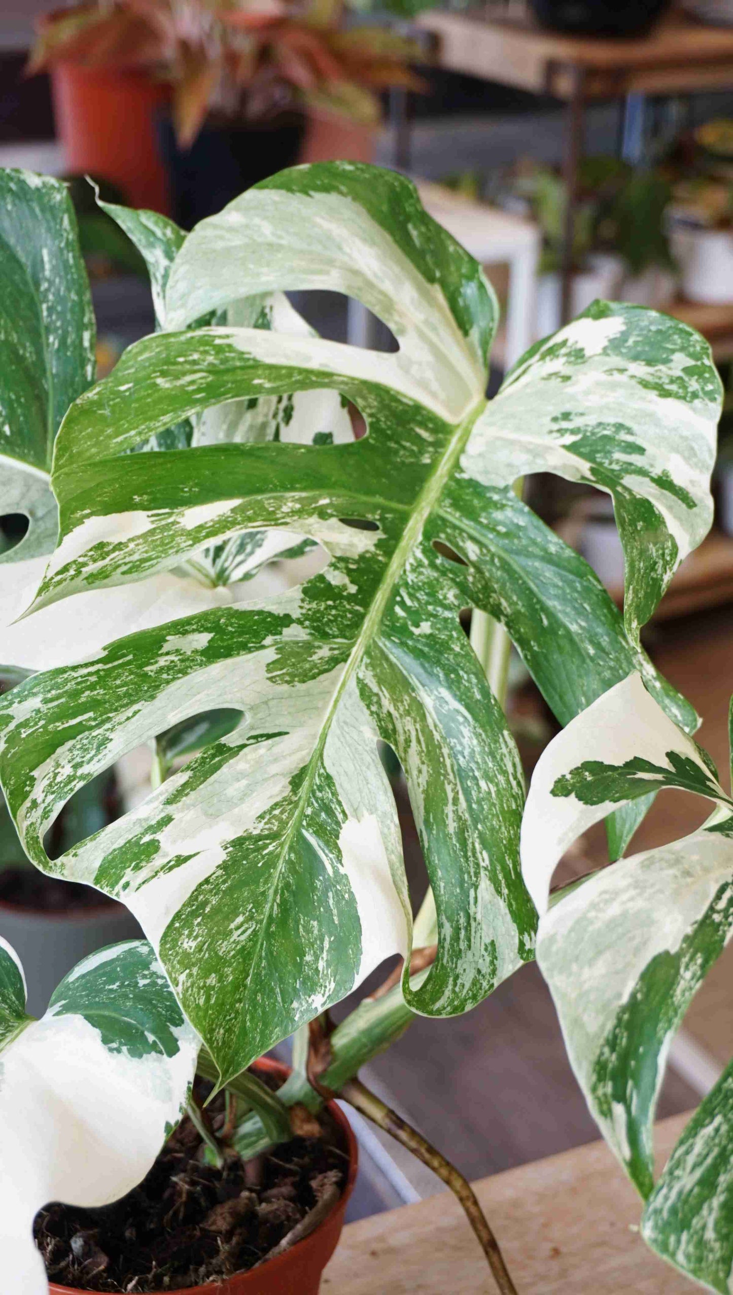 La Monstera Borsigiana Variegata est certainement la star des plantes rares d’intérieur depuis quelques années. C’est une superbe plante grimpante bicolore vert / blanc pur. Facile d’entretien, rapide à la pousse et facile à bouturer c’est une plante que je recommande énormément pour les amateurs de plantes tous niveau!