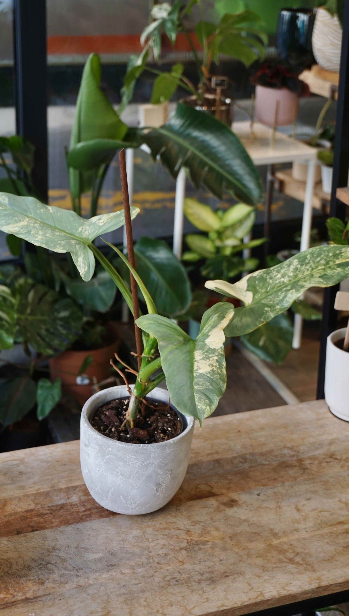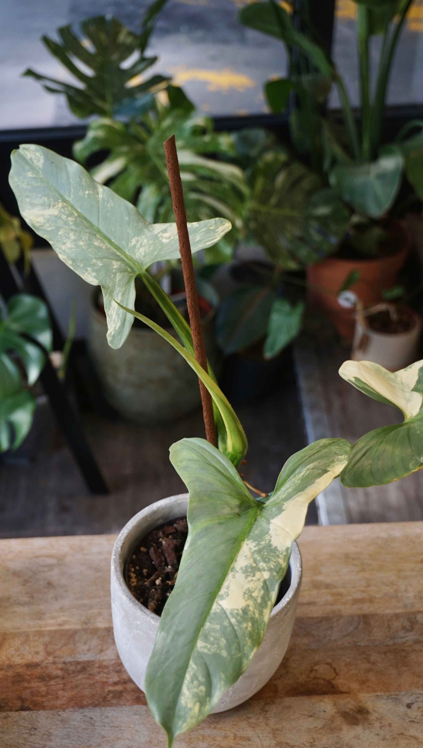 Des couleurs absolument atypiques, douces décorent ce philodendron grimpant. L’alliance de gris-bleu métallique et de la variegation blanc crème est divine. Le Silver Sword Variegata présente ces couleurs hors du commun dans des tons sobres, et combine cela à la forme de ses feuilles en fer de lance.