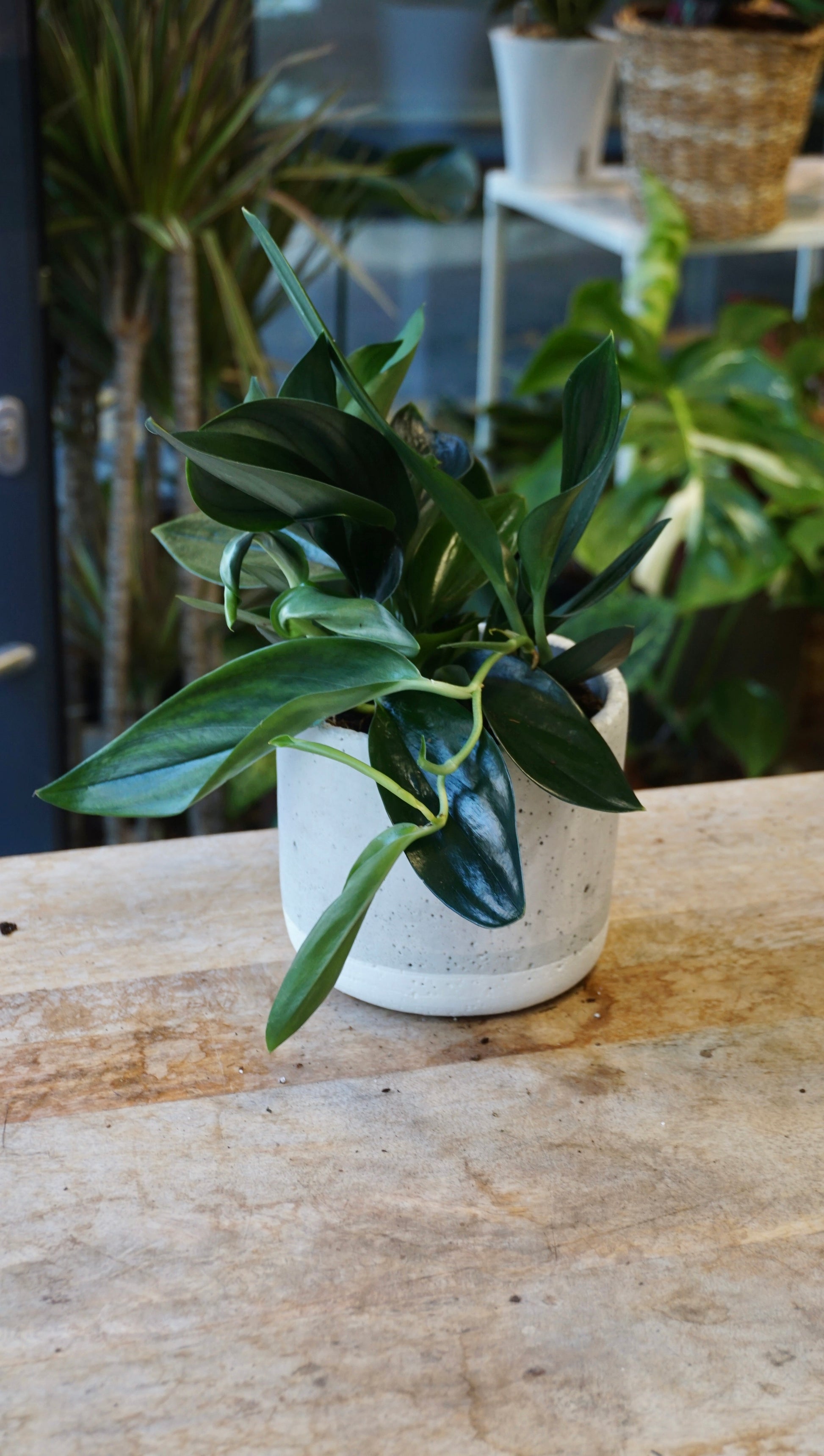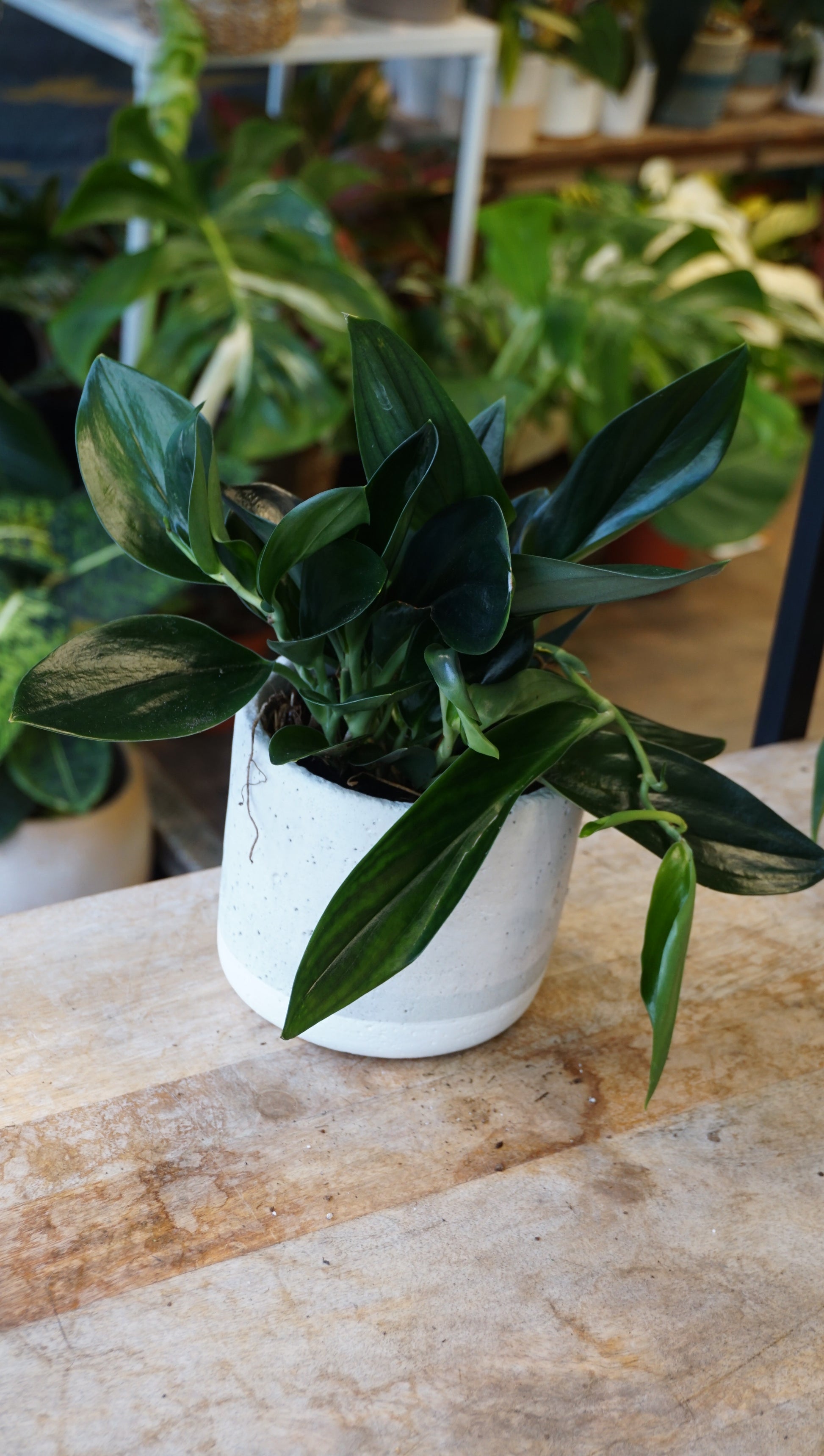 Le Scindapsus Mayari est une superbe plante liane aux feuilles vert et argenté ponctué de variegations d'un beau blanc pur.